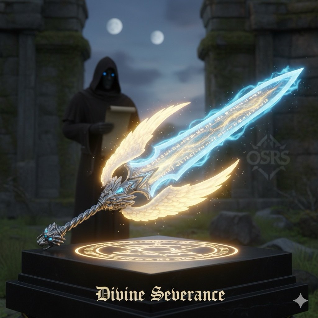 Wield the might of the gods with Divine Severance, a blade forged in divine energy and built to dominate the toughest battles in Gielinor. Every swing delivers devastating power, precision, and control — making it a true weapon of legends.